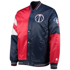 Men’s Starter Red/Navy Washington Wizards 75th Anniversary Leader Color Block Satin Full-Snap Jacket