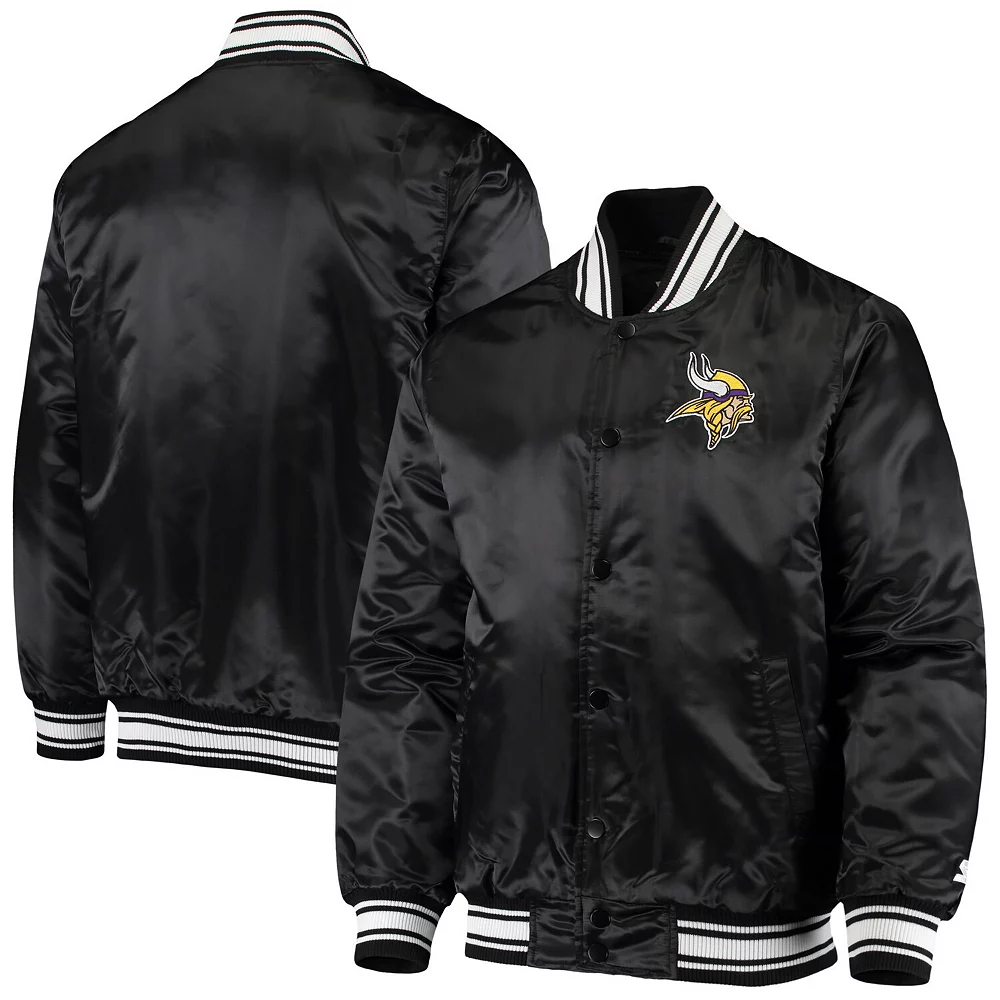 You love to add your Minnesota Vikings fandom to any look, even if the weather starts to cool. Turn heads with this classic Locker Room Satin Varsity full-snap jacket from Starter. With embroidered Minnesota Vikings graphics and a full-snap design, this striking jacket will become your go-to anytime step out.