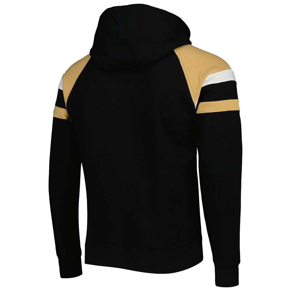 When the temperature drops, layer up on game day with this New Orleans Saints Draft pullover hoodie from Starter. The fleece lining adds extra warmth, and the raglan sleeves offer increased mobility. Best of all, the embroidered graphics and sewn-on stripes add extra flair to your New Orleans Saints wardrobe.