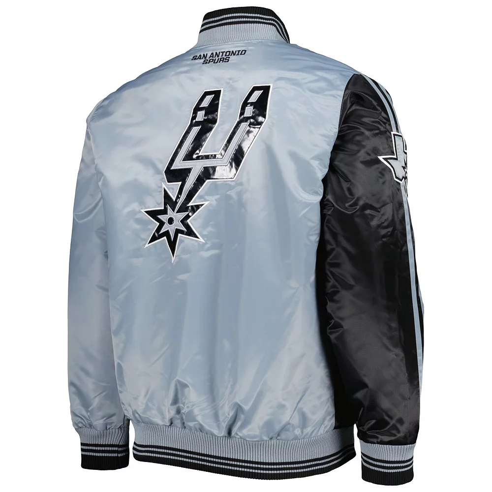 Take any San Antonio Spurs look up a notch with this Fast Break jacket from Starter. It features bold graphics, sewn-on sleeve stripes and sleek satin material. Stand out in San Antonio Spurs style with this striking full-snap jacket.