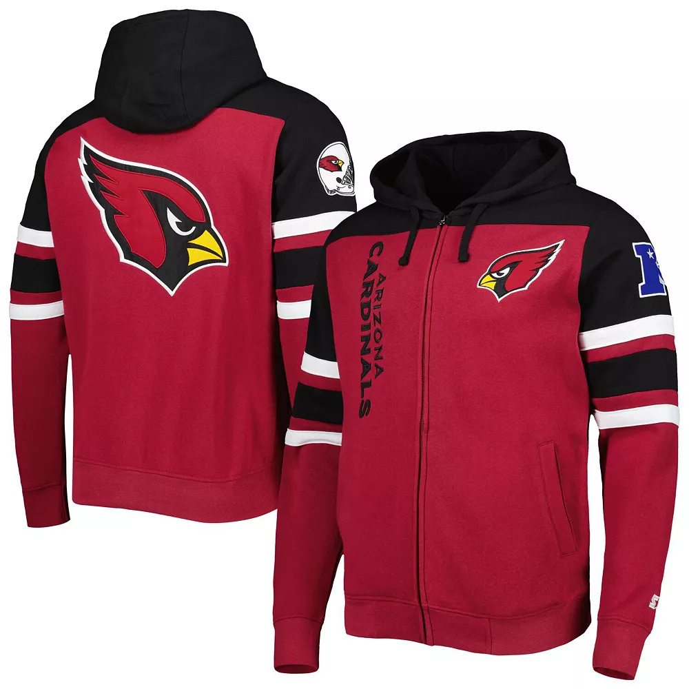 Ensure everyone knows you’re no fair-weather fan by wearing this Extreme hoodie on a chilly day. This midweight jacket features a sporty design and multiple Arizona Cardinals graphics, including an impossible-to-miss logo on the back. Complete with front slip pockets, cozy fleece lining and a full-zip front, this top is a great grab for any true Arizona Cardinals fan.