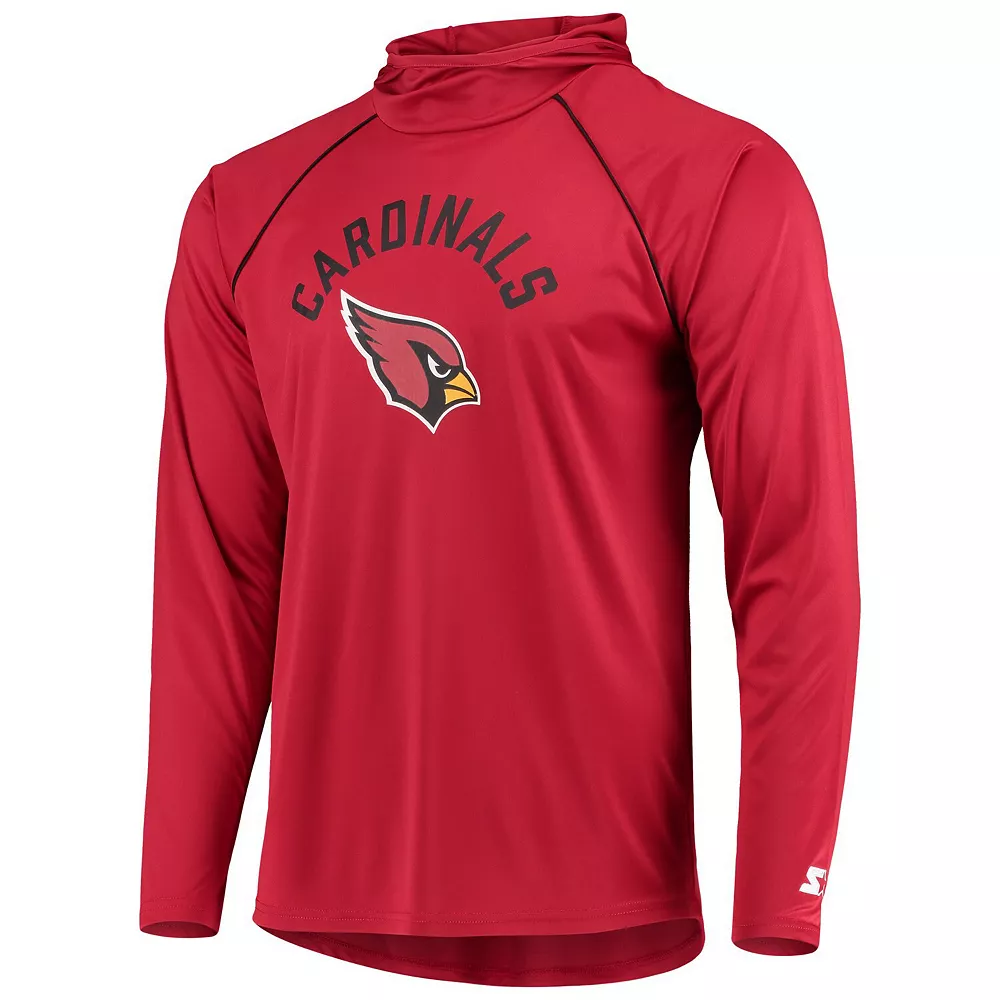 Add an extra touch of comfort to your typical tee by wearing this Arizona Cardinals Hoodie T-shirt from Starter. It features noticeable Arizona Cardinals graphics printed across the front. Raglan sleeves embellished with contrast-color piping finish off the look.