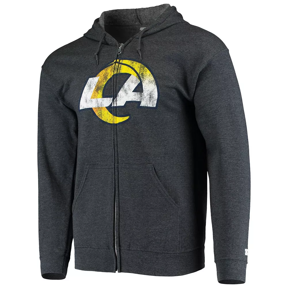Keeping your die-hard Los Angeles Rams devotion quiet is always difficult for you. You won’t have to hide that excitement when you’re wearing this Primary Logo full-zip hoodie from Starter. It’s decked out with distressed Los Angeles Rams graphics for a look that will let everyone know your fandom is nothing to be messed with.