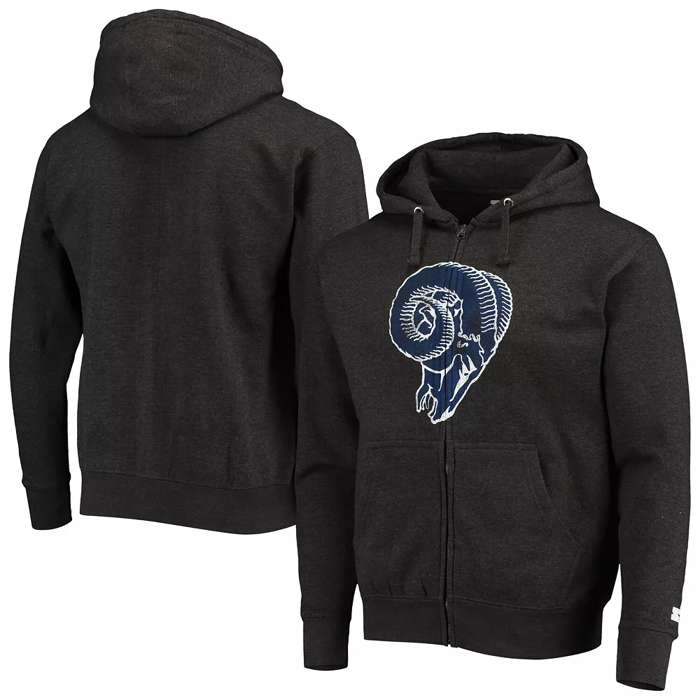 Bask in the good old days with this Los Angeles Rams Throwback Perfect Season jacket by Starter. Complete with a full-zip front, an adjustable hood and two pockets, this midweight fleece-lined jacket provides the perfect amount of coverage for when cooler weather starts to roll in. It also comes with edgy distressed graphics that add that necessary vintage Los Angeles Rams flair to game day.