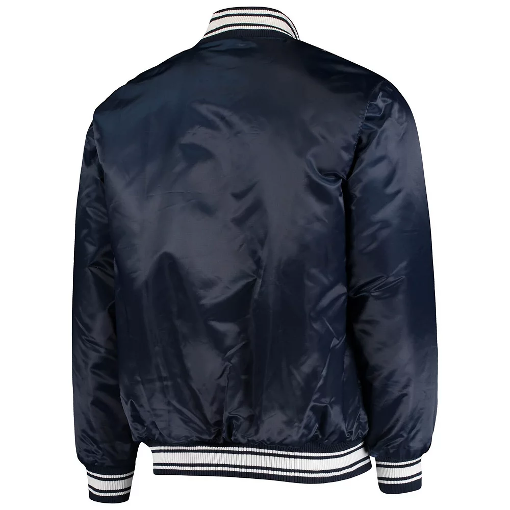 You love to add your Seattle Seahawks fandom to any look, even if the weather starts to cool. Turn heads with this classic Locker Room Satin Varsity full-snap jacket from Starter. With embroidered Seattle Seahawks graphics and a full-snap design, this striking jacket will become your go-to anytime you step out.