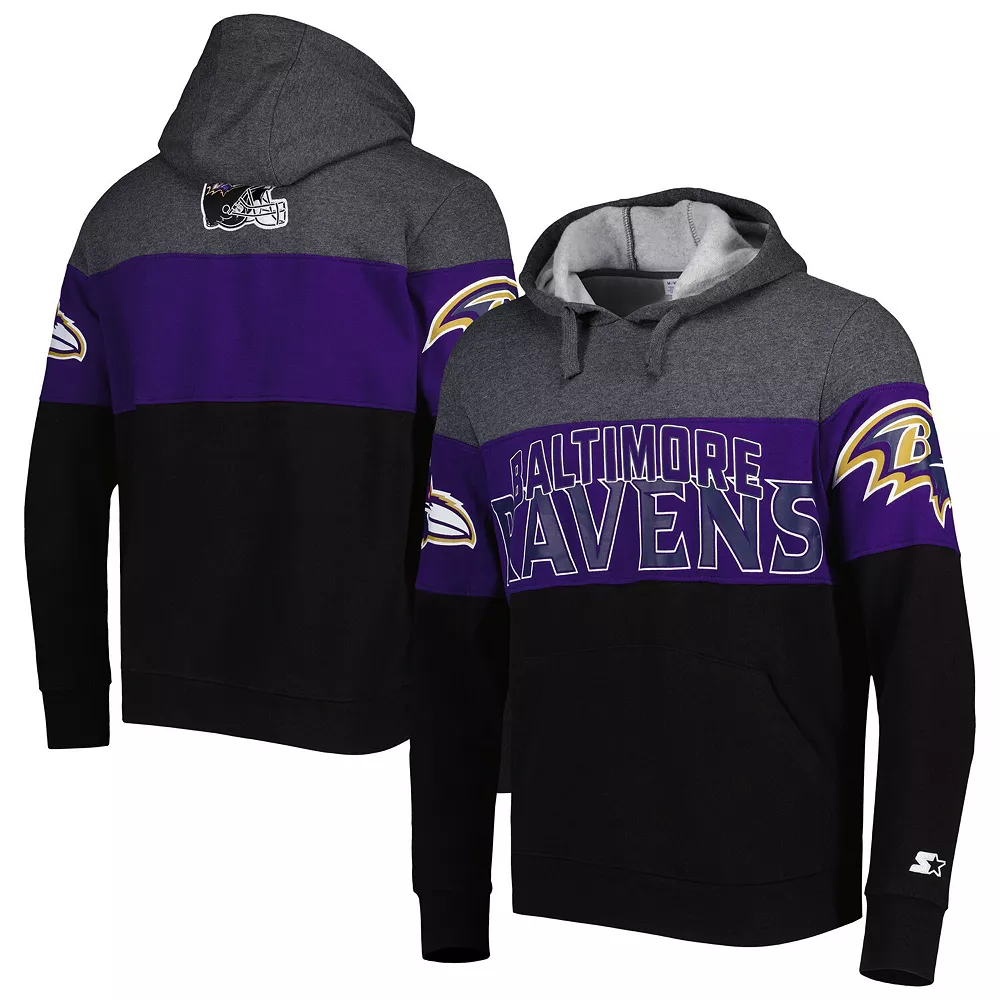 Layer up for the next Baltimore Ravens game day with this Extreme pullover hoodie from Starter. The contrasting colors and bold graphics add serious style to your outerwear collection. The fleece lining keeps you cozy and comfortable with every touchdown.