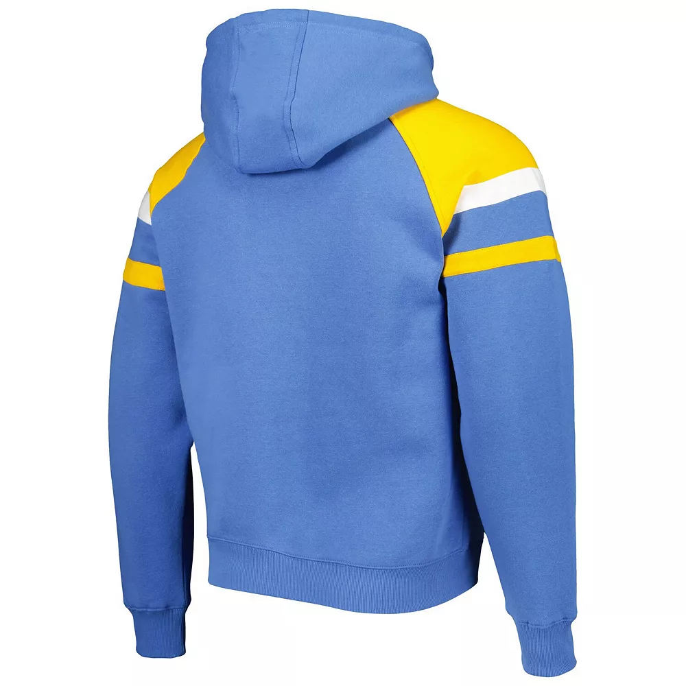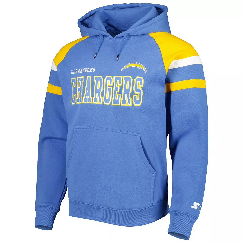 When the temperature drops, layer up on game day with this Los Angeles Chargers Draft pullover hoodie from Starter. The fleece lining adds extra warmth, and the raglan sleeves offer increased mobility. Best of all, the embroidered graphics and sewn-on stripes add extra flair to your Los Angeles Chargers wardrobe.