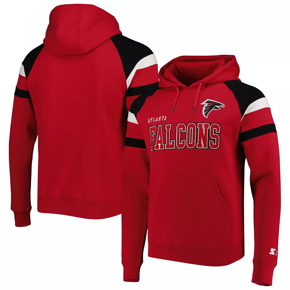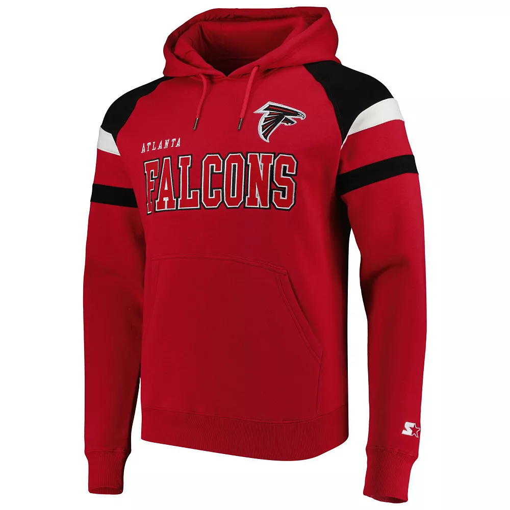 When the temperature drops, layer up on game day with this Atlanta Falcons Draft pullover hoodie from Starter. The fleece lining adds extra warmth, and the raglan sleeves offer increased mobility. Best of all, the embroidered graphics and sewn-on stripes add extra flair to your Atlanta Falcons wardrobe.