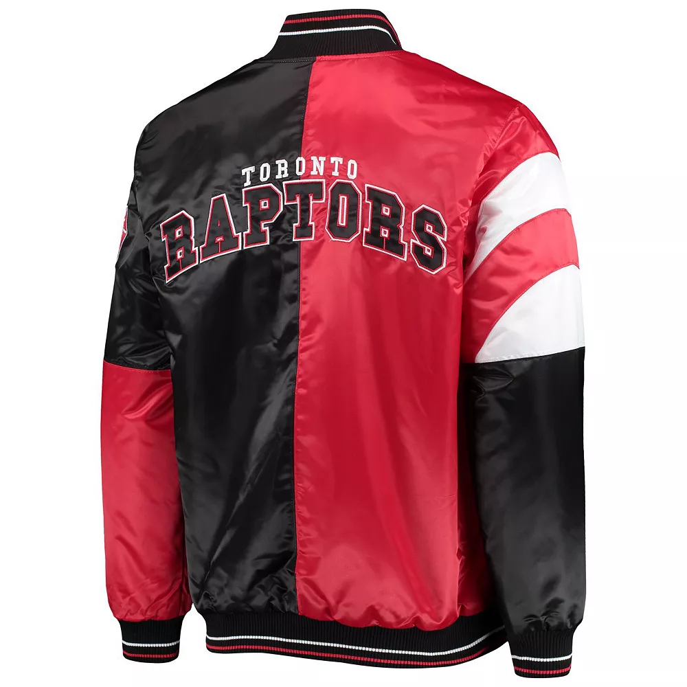 The Leader Color Block full-snap jacket is a dynamic outerwear option that puts Toronto Raptors enthusiasm front and center. This Starter jacket is crafted from soft, durable satin and is finished with a quilted lining for extra protection against the elements. Bold Toronto Raptors graphics on the front and back are enhanced by the contrasting team colorway, providing a game-ready look that’s made for true fans.