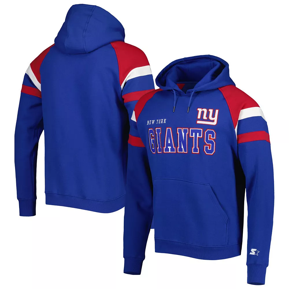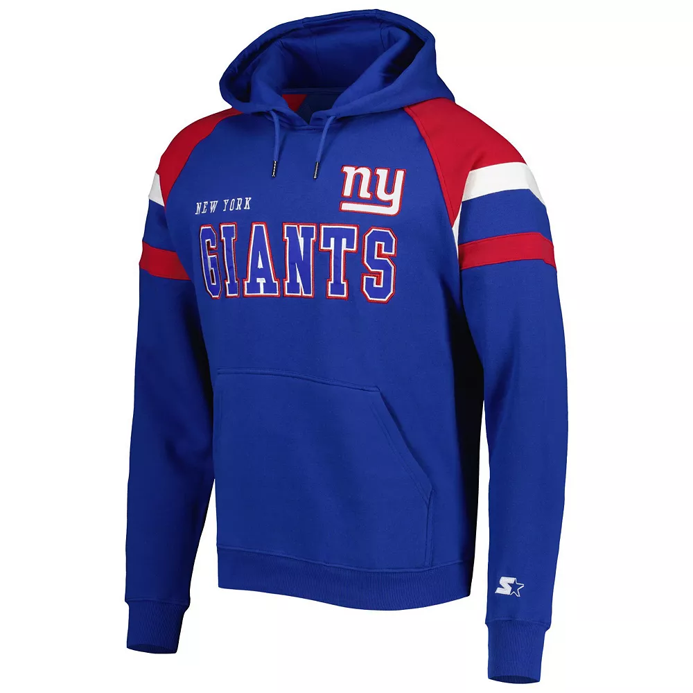 When the temperature drops, layer up on game day with this New York Giants Draft pullover hoodie from Starter. The fleece lining adds extra warmth, and the raglan sleeves offer increased mobility. Best of all, the embroidered graphics and sewn-on stripes add extra flair to your New York Giants wardrobe.
