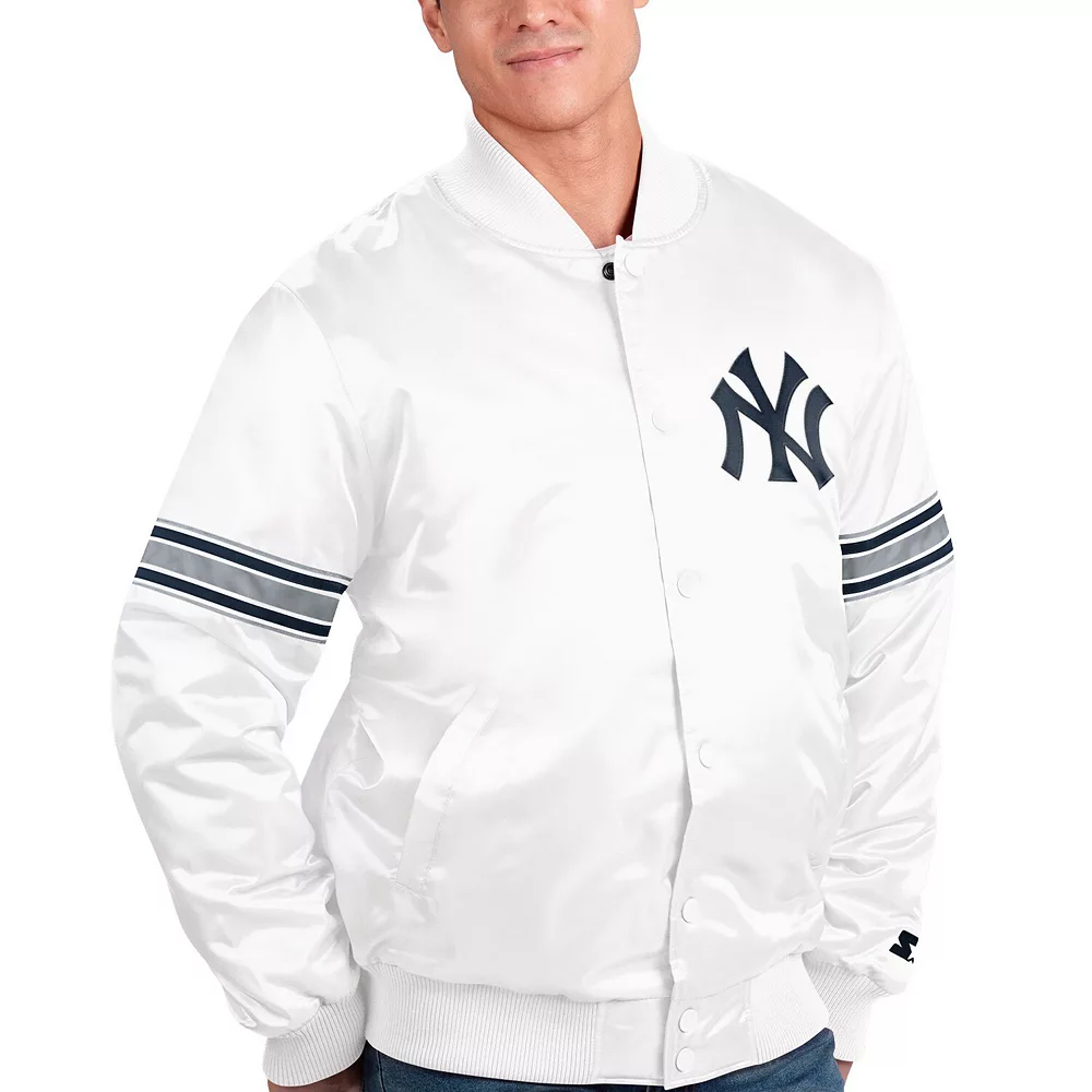 Make sure no one forgets how passionate you are about the New York Yankees by sporting this Starter Power Forward jacket. It features a classic Varsity design with its satin finish and signature New York Yankees graphics. The full-snap front allows you to wear it open or closed for a versatile display of team spirit.